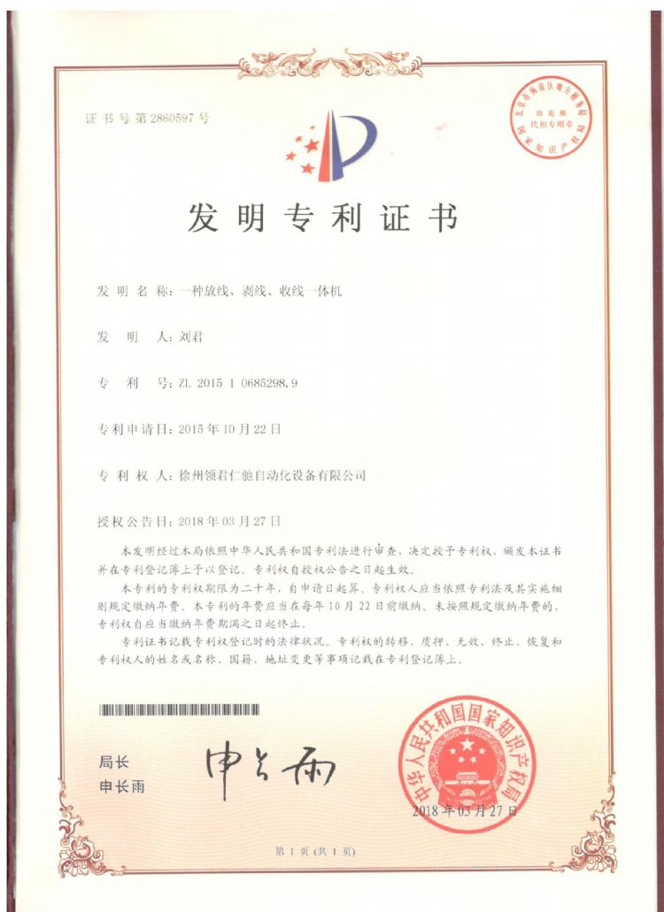 一种放线剥线收线一体机发明专利